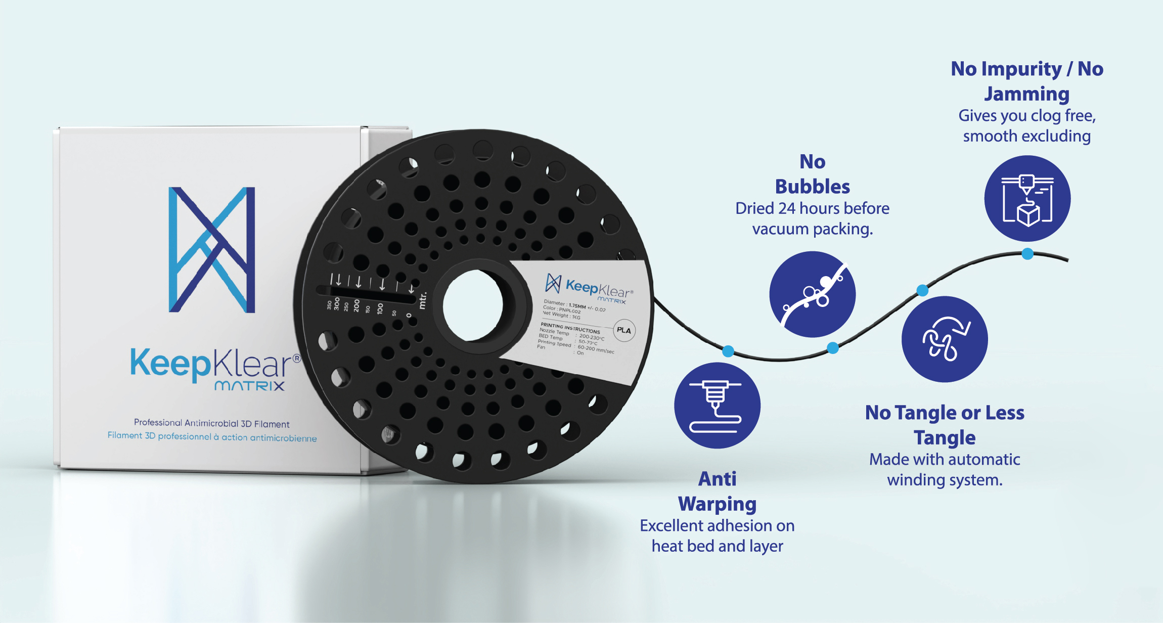 Keep Klear MatriX filaments are produced using advanced extrusion systems and strict process controls to ensure: